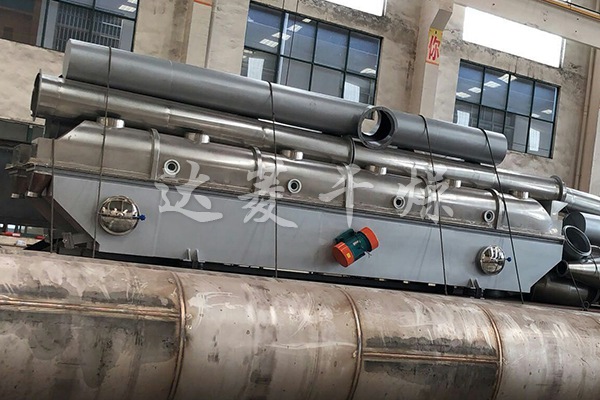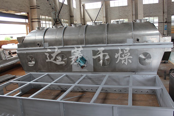 产品概述:物料自进料口进入机内,在振动力作用下,物料沿水平流化床抛掷,向前连续运动,热风向上穿过流化床同湿物料换热后,湿空气经旋风分离器除尘后由排风口排出,干燥物料由排料口排出。